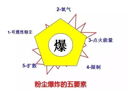 从粉尘爆 炸的形成上看,可燃性物质、空气和点燃源是爆 炸事件发生的三个基本条件,即为爆 炸三要素。