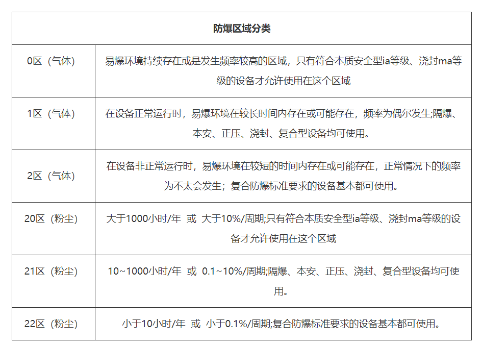 以下是一个简要的防爆等级一览表,它主要基于设备使用的类别、爆炸性气体混合物的温度组别以及防爆型式来划分: 一、设备使用类别 防爆电气设备按照类型可以划分为: 1、Ⅰ类煤矿井下电气设备……