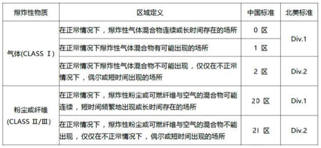 美国和加拿大首先将散布在空气中的爆 炸性物体分成三个 CLASS( 类别 ):CLASS Ⅰ气体和蒸气 ; CLASS Ⅱ 尘埃 ; CLASS Ⅲ纤维 . 然后再将气体和尘埃分成 Group( 组 ) :