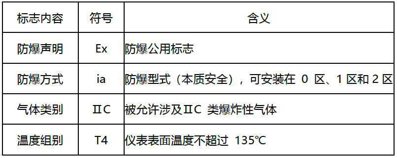 ia 等级:在正常工作、一个故障和二个故障时均不能点燃爆 炸性气体混合物的电气设备。