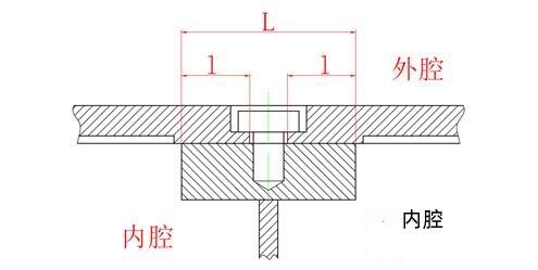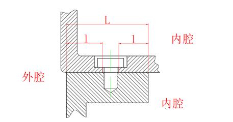 在另外一些情况下,需要将如图3所示两段壳体用螺栓从内侧固定在一起,但是两段壳体没有被隔开,例如多回路组合开关,外壳很长,为了加工方便,制造单位往往将其设计成多段,然后装配成一个完整的外壳。在这种结构中,火焰传播的路径与上面的情况有些区别,火焰从螺栓孔沿着平面往法兰内侧传播时,内侧仍然是隔爆外壳内部,但是向法兰外侧传播时会达到壳体外部,这一通道就需要符合隔爆接合面要求以保证火焰不会传播到外部引起周围环境的爆 炸。因此,这种结构需要控制的隔爆面参数是:总的有效隔爆面接合宽度,孔外侧向外到法兰边缘的距离。