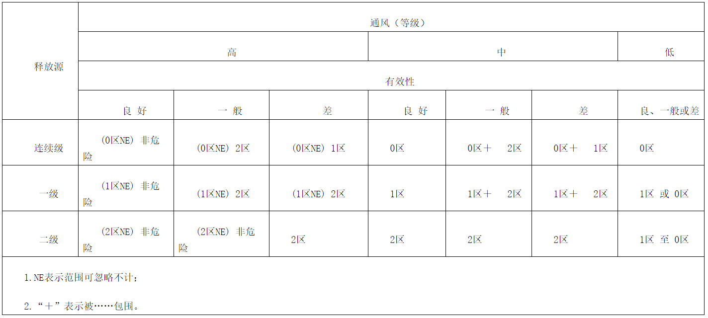 原则上,在没有任何外界条件影响的情况下,连续级释放源周围形成0区;第一级释放源周围形成1区;第二级释放源周围形成 2区。