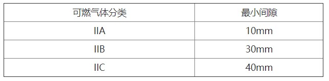 1.14 安装设备时,应注意防止隔爆接合面与固体障碍物(如钢架、墙、护套、安装板、管道或其他电气设备)之间的距离不小于下表规定的数值,试验证明隔离距离可以更小的除外。